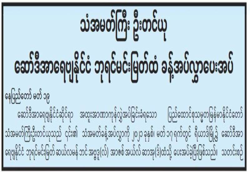 အဋ္ဌမအကြိမ် နိုင်ငံတော်သံဃမဟာနာယကအဖွဲ့ (၄၇) ပါးစုံညီ ဆဋ္ဌအစည်းအဝေးနှင့် သတ္တမ အစည်းအဝေးများသို့ ကြွရောက်တော် မူလာကြသော နိုင်ငံတော်သံဃမဟာနာယက အဖွဲ့ဝင် ဆရာတော် အရှင်မြတ်တို့ဘုရား ဆရာတော်အရှင်မြတ်တို့ ကိုယ်၏ကျန်းမာခြင်း၊ စိတ်၏ ချမ်းသာခြင်းနှင့် ပြည့်စုံတော်မူကြ၍ သာသနာတော်သန့်ရှင်း တည်တံ့ပြန့်ပွားတိုးတက်အောင် ဆောင်ရွက်တော်မူနိုင်ကြပါစေဟု အာသီသပတ္ထနာပြုလျက် နှုတ်ခွန်းဆက်စကား လျှောက်ထား ပါသည်ဘုရား။