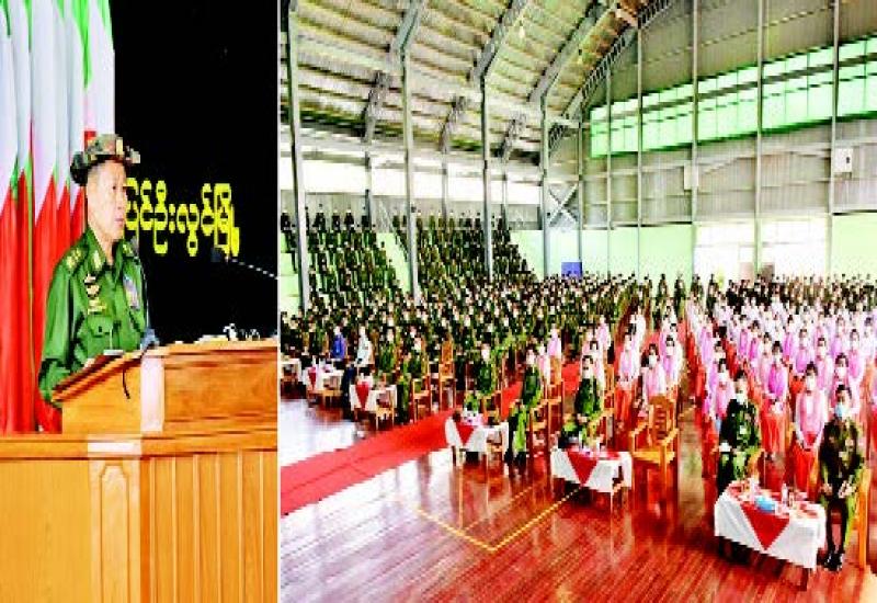 နိုင်ငံတော်စီမံအုပ်ချုပ်ရေးကောင်စီ ဒုတိယဥက္ကဋ္ဌ ဒုတိယတပ်မတော် | ကာကွယ်ရေးဦးစီးချုပ် ကာကွယ်ရေးဦးစီးချုပ်(ကြည်း) ဒုတိယဗိုလ်ချုပ် မှူးကြီး စိုးဝင်းသည် ယနေ့နံနက်ပိုင်းနှင့် မွန်းလွဲပိုင်းတို့တွင် ဗထူးတပ်နယ်နှင့် ပြင်ဦးလွင်တပ်နယ်တို့ရှိ သင်တန်းသား အရာရှိနှင့် ဗိုလ်လောင်းများ၊ သင်တန်းသားစစ်သည်များ၊ သန္ဓေစစ်သည်နှင့် မိသားစုများအား သီးခြားစီ တွေ့ဆုံ၍ အားပေးအမှာစကားပြောကြား သည်။