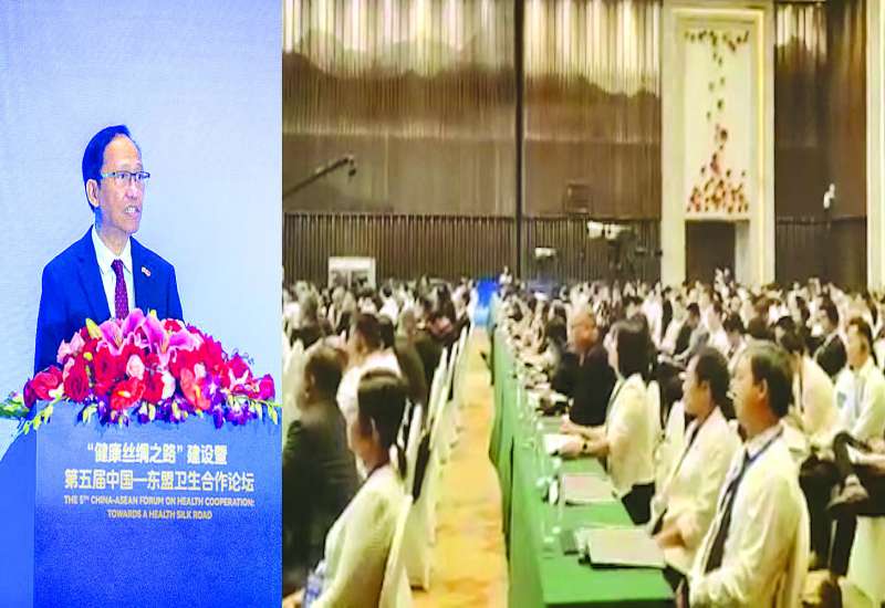 (၅) ကြိမ်မြောက် တရုတ်-အာဆီယံကျန်းမာရေး ဖိုရမ်ဖွင့်ပွဲကို တရုတ်ပြည်သူ့သမ္မတနိုင်ငံ ကွမ်ရှီးကျွမ့် ကိုယ်ပိုင်အုပ်ချုပ်ခွင့်ရဒေသနန်နင်းမြို့ Wuxiang Resort ၌ စက်တင်ဘာ ၁၆ ရက်က ကျင်းပရာ ကျန်းမာရေးဝန်ကြီးဌာန ပြည်ထောင်စုဝန်ကြီး ဒေါက်တာသက်ခိုင်ဝင်း ဦးဆောင်သည့် ကိုယ်စားလှယ်အဖွဲ့ တက်ရောက်ခဲ့သည်။