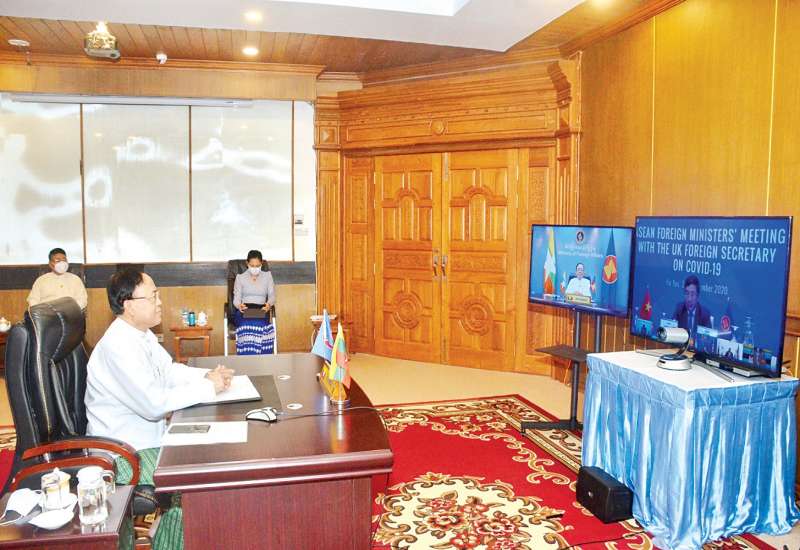 အပြည်ပြည်ဆိုင်ရာပူးပေါင်းဆောင်ရွက်ရေးဝန်ကြီးဌာန ပြည်ထောင်စုဝန်ကြီး ဦးကျော်တင်သည် ယနေ့ မွန်းလွဲ ၂ နာရီခွဲတွင် ဗီဒီယိုကွန်ဖရင့်စနစ်ဖြင့် ကျင်းပသည့် အာဆီယံ နိုင်ငံခြားရေးဝန်ကြီးများနှင့် ဗြိတိန်နိုင်ငံခြားရေး ဝန်ကြီးတို့၏ ကိုဗစ်-၁၉ ကူးစက်ရောဂါဆိုင်ရာ အစည်းအဝေးသို့ နိုင်ငံခြားရေးဝန်ကြီးဌာန နေပြည်တော်မှ ပါဝင်တက်ရောက် သည်။