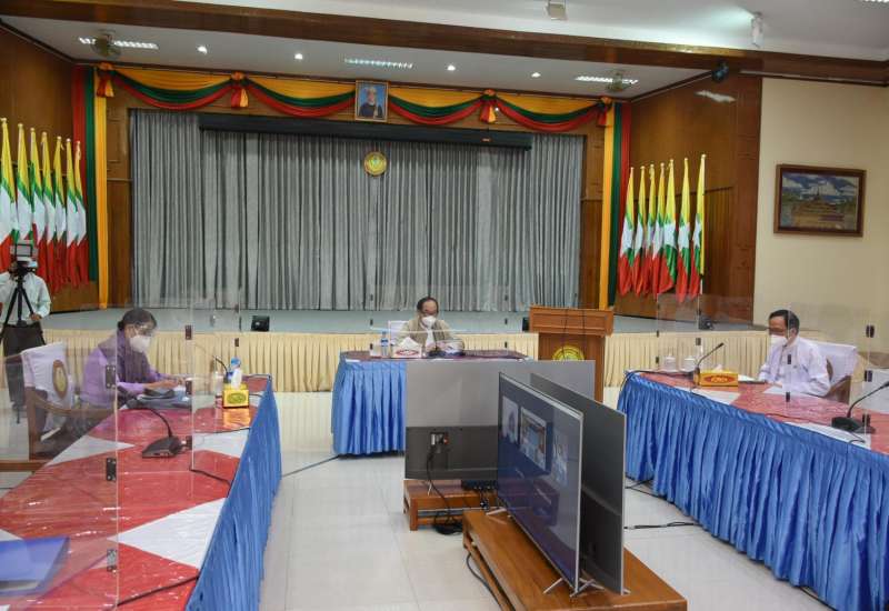 ကျန်းမာရေးနှင့်အားကစားဝန်ကြီးဌာန၏ ကိုဗစ်-၁၉ ကပ်ရောဂါ ကာကွယ်၊ ထိန်းချုပ်၊ ကုသရေးလုပ်ငန်းဆိုင်ရာ ညှိနှိုင်းအစည်းအဝေးကို ယနေ့မွန်းလွဲပိုင်းတွင် Video conferencing ဖြင့် ကျင်းပသည်။