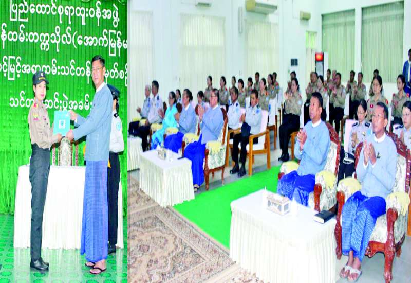 အဆင့်မြင့်အရာထမ်းသင်တန်း အမှတ်စဉ်(၂၇)၏ သင်တန်းဆင်းပွဲကို နိုင်ငံ့ဝန်ထမ်းတက္ကသိုလ် (အောက်မြန်မာပြည်)၌ ယနေ့ကျင်းပရာ ပြည်ထောင်စုရာထူးဝန်အဖွဲ့ဥက္ကဋ္ဌ ဦးစိုးမင်းဦး၊ အဖွဲ့ဝင်ဦးစိုးတင့်၊ တာဝန်ရှိသူများနှင့် သင်တန်းသား သင်တန်းသူများ တက်ရောက်ကြသည်။