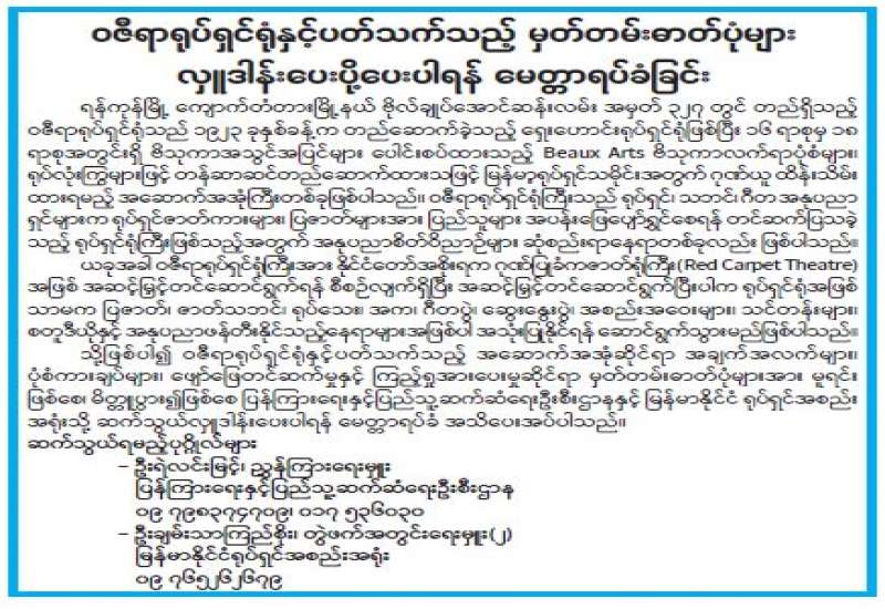 စာရေးဝန်ထမ်း ကြီးကြပ်သင်တန်းအမှတ်စဉ် (၉၈) ၏ သင်တန်းဆင်းပွဲကို ယနေ့နံနက်ပိုင်းတွင် ရန်ကုန်တိုင်းဒေသကြီး လှည်းကူးမြို့နယ် နိုင်ငံ့ဝန်ထမ်းတက္ကသိုလ် (အောက်မြန်မာပြည်)ရှိ အုန်းတောခန်းမ၌ကျင်းပရာ နိုင်ငံ့ဝန်ထမ်း တက္ကသိုလ် (အောက်မြန်မာပြည်)ပါမောက္ခချုပ်၊ ဒုတိယပါမောက္ခချုပ်များ၊ ဌာနကြီးမှူးများ၊ ပါမောက္ခ(ပညာဌာနမှူး) များ၊ ဆရာ ဆရာမများ၊ ဝန်ကြီးဌာနများနှင့်အဖွဲ့အစည်းများမှ သင်တန်းသား သင်တန်းသူများနှင့် တာဝန်ရှိသူများ တက်ရောက်ကြသည်။
