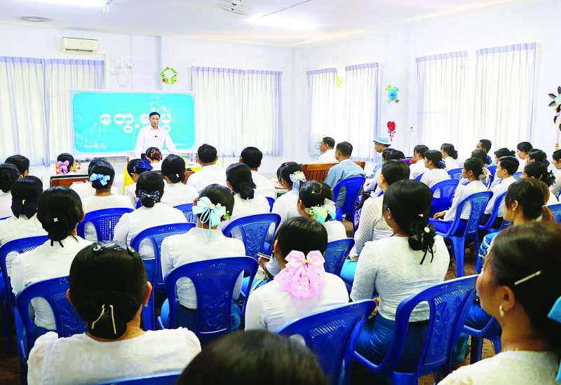 ဝန်ထမ်းစည်းမျဉ်း၊ ဘဏ္ဍာရေးစည်းမျဉ်းဆိုင်ရာ စွမ်းဆောင်ရည်မြှင့်တင်ခြင်းသင်တန်းဆင်းပွဲကို ယနေ့ မွန်းလွဲပိုင်းတွင် နေပြည်တော်ရှိ ဘဏ္ဍာရေးနှင့်အခွန်ဝန်ကြီးဌာန ရသုံးမှန်းခြေ ငွေစာရင်းဦးစီးဌာန ပြည်သူ့ဘဏ္ဍာရေးစီမံခန့်ခွဲမှု သင်တန်းကျောင်း၌ကျင်းပရာ ဘဏ္ဍာရေးနှင့် အခွန်ဝန်ကြီးဌာန ပြည်ထောင်စုဝန်ကြီး ဒေါက်တာကံဇော်၊ ဒုတိယဝန်ကြီးများဖြစ်ကြသော ဒေါ်သန်းသန်းလင်းနှင့် ဦးဟန်ဝင်းအောင်၊ ဌာနဆိုင်ရာတာဝန်ရှိသူများ၊ သင်တန်းနည်းပြများနှင့် သင်တန်းသား သင်တန်းသူများ တက်ရောက်ကြသည်။
