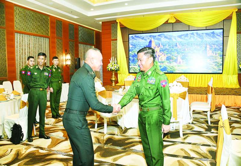 ထိုင်းဘုရင့်တပ်မတော်ကာကွယ်ရေးဦးစီးချုပ် General Ukris Boontanondha ဦးဆောင်သော ကိုယ်စားလှယ်အဖွဲ့ဝင်များအား နိုင်ငံတော်လုံခြုံရေးနှင့်အေးချမ်းသာယာရေးကော်မရှင်အဖွဲ့ဝင် ညှိနှိုင်းကွပ်ကဲရေးမှူး (ကြည်း၊ ရေ၊ လေ) ဗိုလ်ချုပ်ကြီး ကျော်စွာလင်းက ယနေ့နေ့လယ်ပိုင်းတွင် နေပြည်တော်ရှိ Jasmine ဟိုတယ်၌ ဂုဏ်ပြုနေ့လယ်စာဖြင့် တည်ခင်းဧည့်ခံသည်။