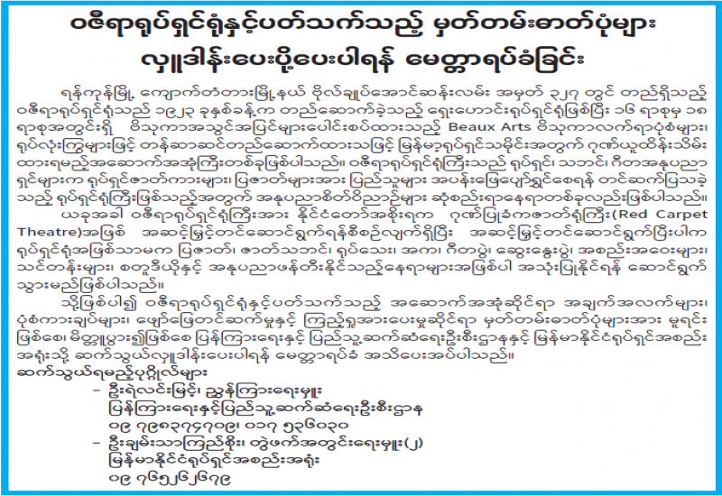 ရန်ကုန်မြို့ ကျောက်တံတားမြို့နယ် ဗိုလ်ချုပ်အောင်ဆန်းလမ်းအမှတ် ၃၂၇ တွင် တည်ရှိသည့် ဝဇီရာရုပ်ရှင်ရုံသည် ၁၉၂၃ ခုနှစ်ခန့်က တည်ဆောက်ခဲ့သည့် ရှေးဟောင်းရုပ်ရှင်ရုံဖြစ်ပြီး ၁၆ ရာစုမှ ၁၈ ရာစုအတွင်းရှိ ဗိသုကာအသွင်အပြင်များပေါင်းစပ်ထားသည့် Beaux Arts ဗိသုကာလက်ရာပုံစံများ၊ ရုပ်လုံးကြွများဖြင့် တန်ဆာဆင်တည်ဆောက်ထားသဖြင့် မြန်မာ့ရုပ်ရှင်သမိုင်းအတွက် ဂုဏ်ယူထိန်းသိမ်း ထားရမည့်အဆောက်အအုံကြီးတစ်ခုဖြစ်ပါသည်။ ဝဇီရာရုပ်ရှင်ရုံကြီးသည် ရုပ်ရှင်၊ သဘင်၊ ဂီတအနုပညာရှင်များက ရုပ်ရှင်ဇာတ်ကားများ၊ ပြဇာတ်များအား ပြည်သူများ အပန်းဖြေပျော်ရွှင်စေရန် တင်ဆက်ပြသခဲ့သည့် ရုပ်ရှင်ရုံကြီးဖြစ်သည့်အတွက် အနုပညာစိတ်ဝိညာဉ်များ ဆုံစည်းရာနေရာတစ်ခုလည်း ဖြစ်ပါသည်။