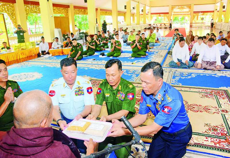 တပ်မတော်(ကြည်း၊ ရေ၊ လေ) မိသားစုများနှင့် စေတနာရှင် ပြည်သူများက စုပေါင်းပါဝင်လှူဒါန်းသည့် ဆွမ်းဆန်တော်၊ ဆီ၊ ဆား၊ ပဲ၊ ဆေးနှင့် ဆွမ်းပဒေသာပင် စိုက်ထူလှူဒါန်းပွဲကို ယနေ့မွန်းလွဲပိုင်းက နေပြည်တော် ပျဉ်းမနားမြို့ မဟာဓမ္မိကာရာမအုန်းတောကျောင်းတိုက်၌ ပြုလုပ်ရာ နေပြည်တော် ဥပ္ပါတသန္တိစေတီတော် ဩဝါဒါစရိယဘဒ္ဒန္တဝိစက္ခဏ အမှူးပြုသော ဆရာတော်၊ သံဃာတော်များကြွရောက်တော်မူကြပြီး ကာကွယ်ရေးဦးစီးချုပ်ရုံးမှ တပ်မတော်အရာရှိကြီးများ၊ အရာရှိ၊ စစ်သည်၊ မိသားစုဝင်များ၊ ဌာနဆိုင်ရာတာဝန်ရှိသူများ၊ စေတနာရှင်အလှူရှင်များ တက်ရောက်ကြသည်။