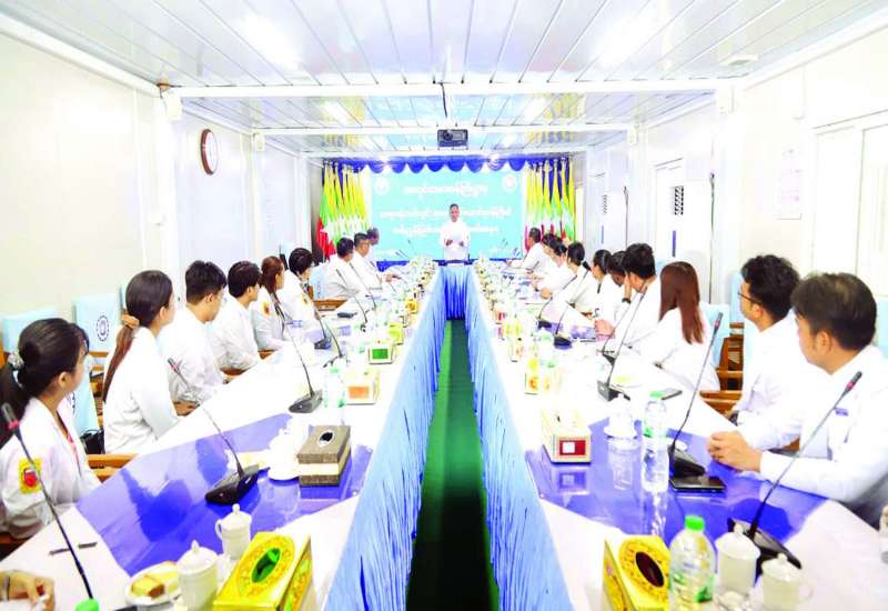 ကျန်းမာရေးဝန်ကြီးဌာနမှ အလုပ်သမားဝန်ကြီးဌာန လူမှုဖူလုံရေးအဖွဲ့အတွက် ခန့်အပ်တာဝန်ပေးအပ်ခဲ့သည့် ဆရာဝန်(သစ်လွင်)များကို အလုပ်သမားဝန်ကြီးဌာန ပြည်ထောင်စုဝန်ကြီးက တွေ့ဆုံအမှာစကားပြောကြားသည့် အခမ်းအနားကို ယနေ့နံနက်ပိုင်းတွင် ယာယီရုံးအစည်းအဝေးခန်းမ၌ ကျင်းပသည်။