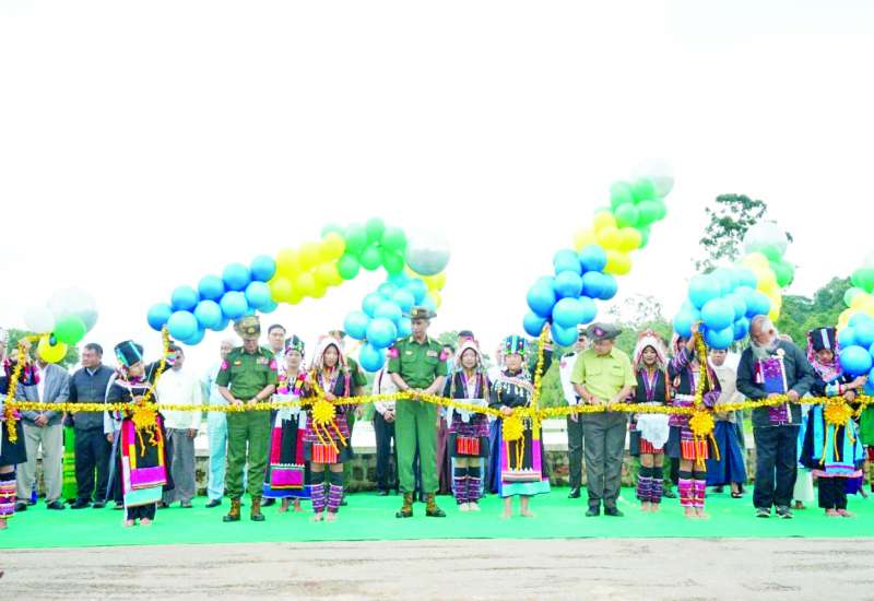 ရှမ်းပြည်နယ်(အရှေ့ပိုင်း) ကျိုင်းတုံမြို့နယ် လွိုင်မွေဒေသ ကျေးရွာလေးရွာ စိမ့်စမ်းရေသွယ်ယူ ခြင်း (၉/၀)မိုင် လုပ်ငန်းဖွင့်ပွဲကို ယနေ့နံနက်ပိုင်းတွင် လွိုင်မွေတောင်စခန်းမြို့ လွိုင်မွေရေကန်ကြီးအနီး၌ ပြုလုပ်ရာ တြိဂံဒေသတိုင်းစစ်ဌာနချုပ်တိုင်းမှူးနှင့် တာဝန်ရှိသူများ၊ ပြည်နယ်၊ ခရိုင်၊ မြို့နယ်အဆင့် ဌာနဆိုင်ရာတာဝန်ရှိသူများ၊ တိုင်းရင်းသားရိုးရာ အဖွဲ့များ၊ ရပ်မိရပ်ဖများနှင့် ဒေသခံပြည်သူများတက်ရောက်ကြသည်။