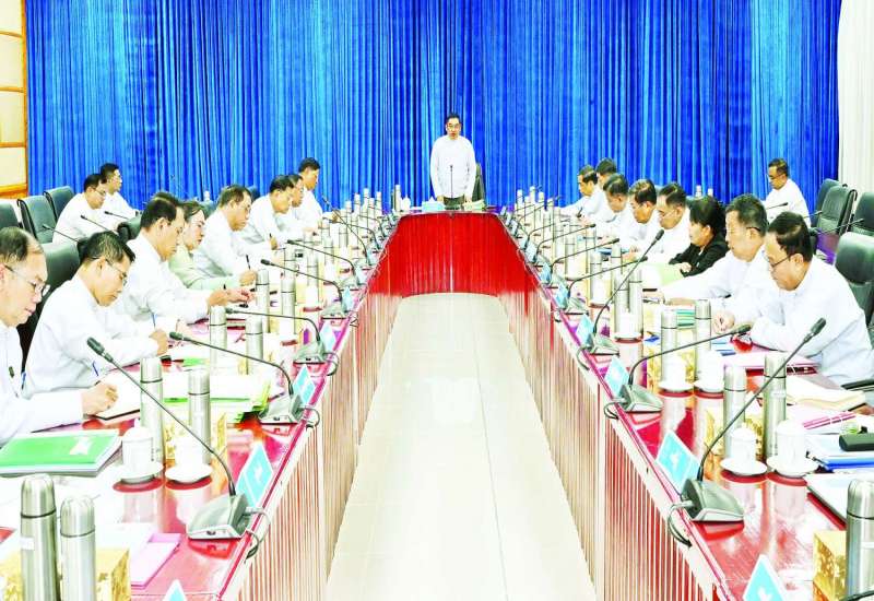 ပြည်ထောင်စုသမ္မတမြန်မာနိုင်ငံတော် ပြည်ထောင်စုအစိုးရအဖွဲ့အစည်းအဝေးကို ယနေ့မွန်းလွဲပိုင်းတွင် နိုင်ငံတော်ဝန်ကြီးချုပ်ရုံး အစည်းအဝေးခန်းမ၌ ကျင်းပပြုလုပ်ရာ နိုင်ငံတော်ဝန်ကြီးချုပ် ဦးညိုစော တက်ရောက်အမှာစကားပြောကြားသည်။