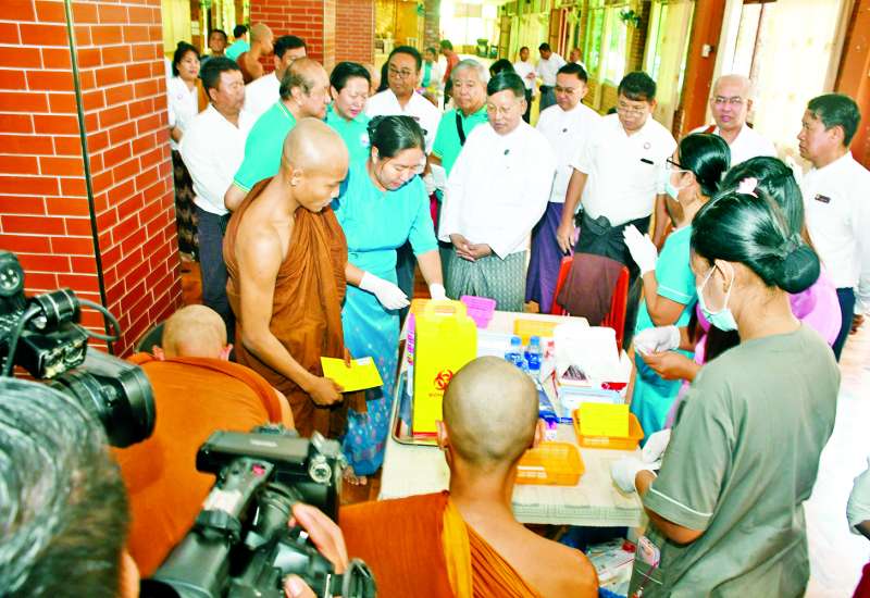 သာသနာရေးနှင့်ယဉ်ကျေးမှုဝန်ကြီးဌာန ပြည်ထောင်စုဝန်ကြီး ဦးတင်ဦးလွင်သည် သာသနာရေးဦးစီးဌာန ညွှန်ကြားရေးမှူးချုပ် ဦးစိုးမင်းထွန်း၊ တာဝန်ရှိသူများနှင့်အတူ ယနေ့နံနက်ပိုင်းတွင် ရန်ကုန်တိုင်းဒေသကြီး လှည်းကူးမြို့နယ် မဟာဝိဟာရကျောင်းတိုက်၌ သီတင်းသုံးလျက်ရှိသော သံဃာတော်များအား အစာအိမ်၊ အူလမ်းကြောင်းနှင့် အသည်းရောဂါဖောင်ဒေးရှင်း(မြန်မာ)နှင့် Trust Alliance Company တို့ပူးပေါင်း၍ ပထမအကြိမ် အသည်းရောင်အသားဝါ(ဘီ)ပိုး၊ (စီ)ပိုးစစ်ဆေးခြင်းနှင့် ဘီပိုးကာကွယ်ဆေးထိုးနှံခြင်း အခမ်းအနားသို့တက်ရောက်ပြီး ဆရာတော်များအား ဖူးမြော်ကြည်ညို၍ သံဃာတော်များ ကာကွယ်ဆေးထိုးနှံနေမှုကို ကြည့်ရှုအားပေးသည်။