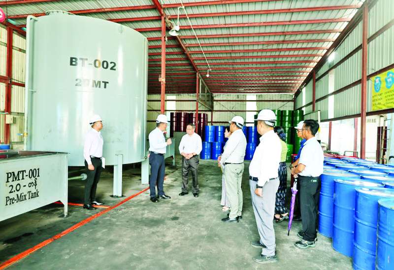စွမ်းအင်ဝန်ကြီးဌာန ဒုတိယဝန်ကြီး ဦးကျော်နိုင်ဝင်းသည် တာဝန်ရှိသူများနှင့်အတူ ယမန်နေ့က ရန်ကုန်တိုင်းဒေသကြီး လှိုင်သာယာစက်မှုဇုန်ရှိ Energetic Alliance Petroleum Products Co., Ltd. နှင့် Hein Engineering Co., Ltd. တို့၏ စက်ဆီချောဆီရောစပ်စက်ရုံနှင့် သီလဝါအထူး စီးပွားရေးဇုန်ရှိ Pacific-PSP Syntech Co., Ltd. ၏ စက်ဆီချောဆီရောစပ်စက်ရုံများကိုသွားရောက်၍ ပြည်ပမှ စက်မှုကုန်ကြမ်းတင်သွင်းကာ ပြည်တွင်း၌ စက်ဆီချောဆီရောစပ်ထုတ်လုပ် ဖြန့်ဖြူးရောင်းချခြင်း လုပ်ငန်းလုပ်ကိုင်ဆောင်ရွက်နေမှုအခြေအနေကို သွားရောက်ကြည့်ရှုစစ်ဆေးသည်။