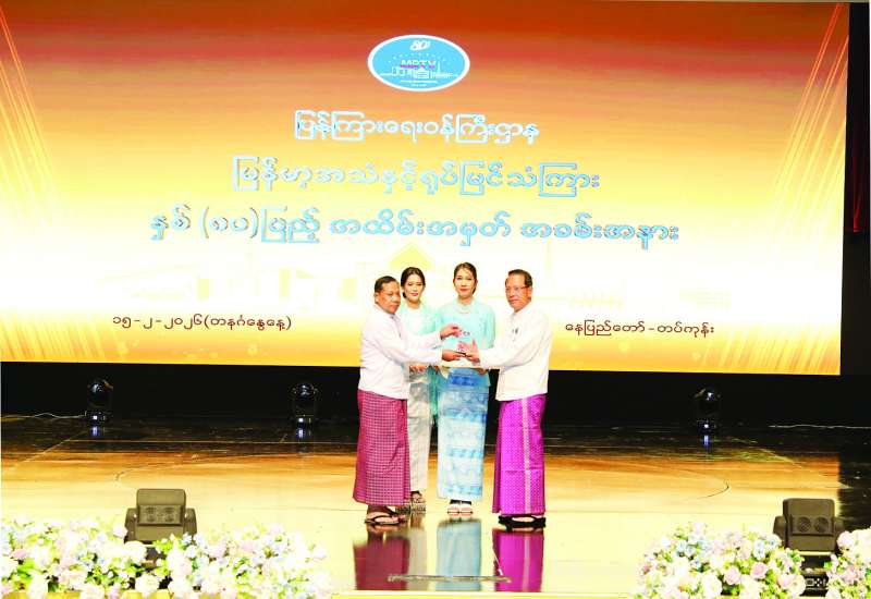 ပြန်ကြားရေးဝန်ကြီးဌာန မြန်မာ့အသံနှင့်ရုပ်မြင်သံကြား၏ နှစ် (၈၀)ပြည့် အထိမ်းအမှတ် ထူးချွန်ဆုရရှိသောဝန်ထမ်းများအား ဆုချီးမြှင့်ခြင်းနှင့် ဝန်ထမ်းများအတွက် ဗလာမပါ ကံစမ်းမဲများချီးမြှင့်ခြင်းကို ယနေ့မွန်းလွဲ ၂ နာရီတွင် နေပြည်တော်(တပ်ကုန်း မြို့)ရှိ မြန်မာ့အသံနှင့်ရုပ်မြင် သံကြား Auditorium ၌ ကျင်းပသည်။