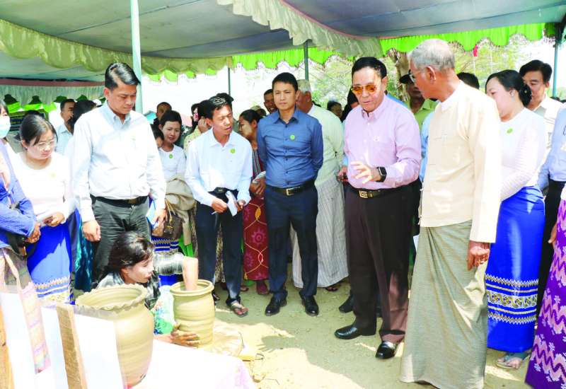 သမဝါယမနှင့်ကျေးလက်ဖွံ့ဖြိုးရေးဝန်ကြီးဌာန ပြည်ထောင်စုဝန်ကြီး ဦးလှမိုးသည် တာဝန်ရှိသူ များနှင့်အတူ ယနေ့နံနက်ပိုင်းက ပဲခူးတိုင်းဒေသကြီး ပန်းတောင်းမြို့ ဖောင်းကန်ရပ်ကွက်၌ ရွှေအိုးစက်မှုလက်မှုကုန်ထုတ်သမဝါယမအသင်းမှ အိုးလုပ်ငန်းလုပ်ကိုင်သော သမဝါယမအသင်းသားများ၊ ဒေသခံတောင်သူများနှင့် တွေ့ဆုံသည်။