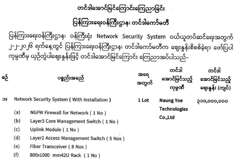 (၇၉)နှစ်မြောက် ပြည်ထောင်စုနေ့ကို ကြိုဆိုဂုဏ်ပြုသောအားဖြင့် ပြည်ထောင်စုအဆင့် MSME ထုတ်ကုန်ပြပွဲနှင့် ဈေးရောင်းပွဲတော် (နေပြည်တော်) ကို နေပြည်တော် ပြည်သူ့ရင်ပြင်၌ ဖေဖော်ဝါရီ ၈ ရက်မှ ၁၃ ရက်အထိ စည်ကားသိုက်မြိုက်စွာ ကျင်းပသွားမည်ဖြစ်သည်၊၊