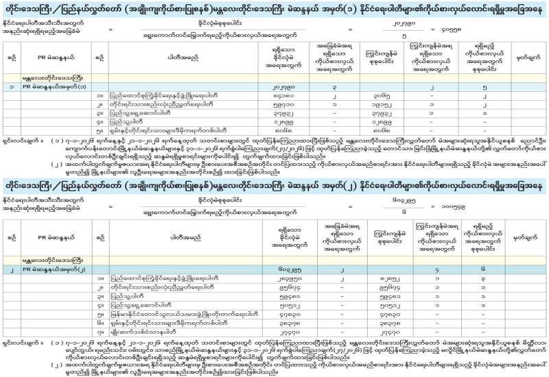 တိုင်းဒေသကြီး/ပြည်နယ်လွှတ်တော်(အချိုးကျကိုယ်စားပြုစနစ်)၊ ပဲခူးတိုင်းဒေသကြီးမဲဆန္ဒနယ်အမှတ်(၁)၊ (၂)၊ (၃)၊ (၄)၊ (၅) နိုင်ငံရေးပါတီများ၏ ကိုယ်စားလှယ်လောင်းရရှိမှုအခြေအနေ