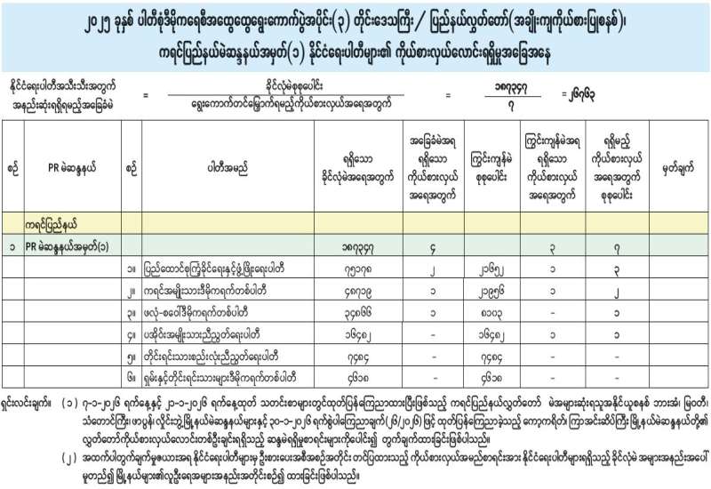 ၂၀၂၅ ခုနှစ် ပါတီစုံဒီမိုကရေစီအထွေထွေရွေးကောက်ပွဲအပိုင်း(၃) တိုင်းဒေသကြီး/ ပြည်နယ်လွှတ်တော် (အချိုးကျကိုယ်စားပြုစနစ်)၊ ကရင်ပြည်နယ်မဲဆန္ဒနယ်အမှတ် (၁) နိုင်ငံရေးပါတီများ၏ ကိုယ်စားလှယ်လောင်းရရှိမှုအခြေအနေ