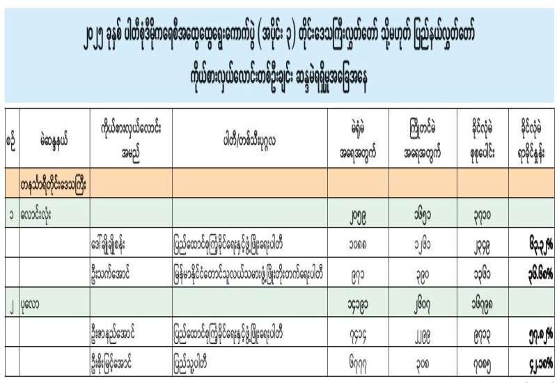 အမျိုးသားလွှတ်တော် (အချိုးကျကိုယ်စားပြုစနစ်)၊ ဧရာဝတီတိုင်းဒေသကြီးမဲဆန္ဒနယ်အမှတ် (၂) နိုင်ငံရေးပါတီများ၏ ကိုယ်စားလှယ်လောင်းရရှိမှုအခြေအနေ