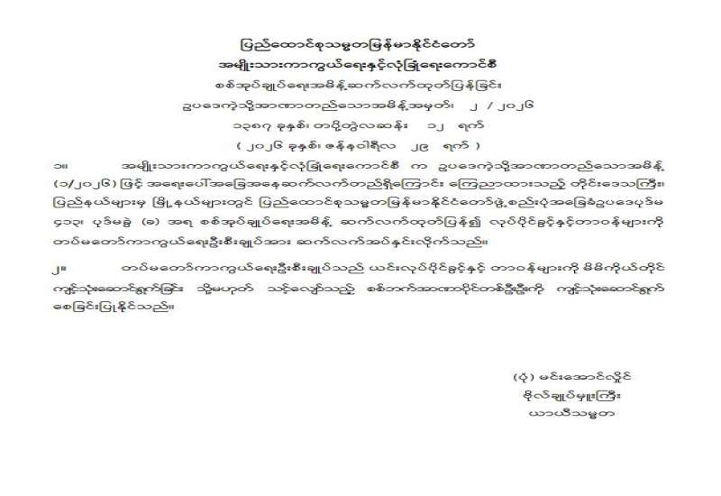 နိုင်ငံတော်အစိုးရအနေဖြင့် စစ်မှန်ပြီးစည်းကမ်းပြည့်ဝသည့် ဒီမိုကရေစီလမ်းကြောင်းပေါ်တွင် ပြည်သူလူထု၏ဆန္ဒနှင့်အညီ လျှောက်လှမ်းနိုင်ရေး ပါတီစုံဒီမိုကရေစီအထွေထွေရွေးကောက်ပွဲကို အောင်မြင်စွာကျင်းပပေးနိုင်ပြီဖြစ်သည်။ နိုင်ငံတော်အစိုးရ၊ တပ်မတော်နှင့် ပြည်သူလူထု လက်တွဲညီညီ ကြိုးပမ်းဆောင်ရွက်ခဲ့သောကြောင့် တည်ငြိမ်အေးချမ်းပြီး ဖွံ့ဖြိုးတိုးတက်သည့် ဒီမိုကရေစီနိုင်ငံတော်သစ် တည်ဆောက်နိုင်မည့်လမ်းကြောင်းပေါ်သို့ ရောက်ရှိခဲ့ပြီဖြစ်သည်။