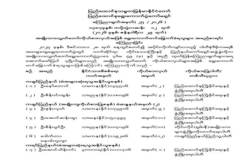 ရန်ကုန်မြို့နှင့် မန္တလေးမြို့အတွက် ရည်ညွှန်းလက်ကားဈေးနှုန်းများနှင့် ပြည်ထောင်စုနယ်မြေ နေပြည်တော်၊ တိုင်းဒေသကြီး/ပြည်နယ် မြို့တော်များအတွက် ရည်ညွှန်းလက်လီဈေးနှုန်းများ