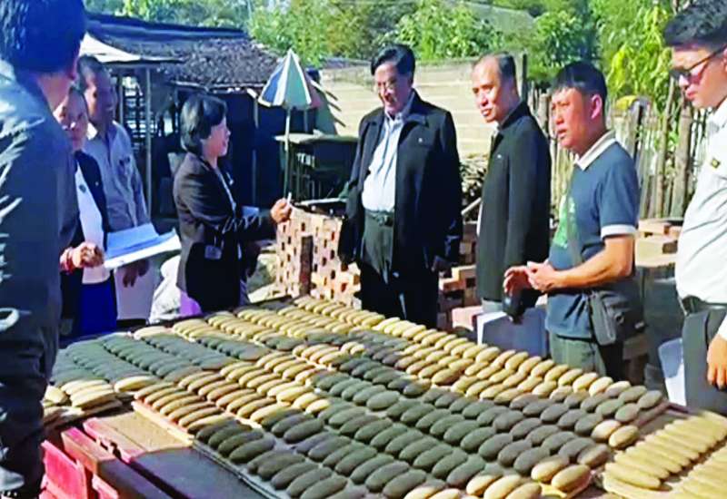 စက်မှုဝန်ကြီးဌာန ပြည်ထောင်စုဝန်ကြီး ဒေါက်တာချာလီသန်းသည် သမဝါယမနှင့်ကျေးလက်ဖွံ့ဖြိုးရေးဝန်ကြီးဌာန ဒုတိယဝန်ကြီး ဦးသိုက်စိုးနှင့်အတူ ယနေ့မွန်းလွဲပိုင်းတွင် ကျိုင်းတုံခရိုင် ဝမ်ဟကျေးရွာရှိ အုတ်အမိုးပြား ထုတ်လုပ်ရေးလုပ်ငန်းသို့ရောက်ရှိပြီး အုတ်အမိုးပြားများ ထုတ်လုပ်မှုနည်းစဉ်အဆင့်ဆင့်တို့ကို လှည့်လည်အားပေးကြည့်ရှုသည်။