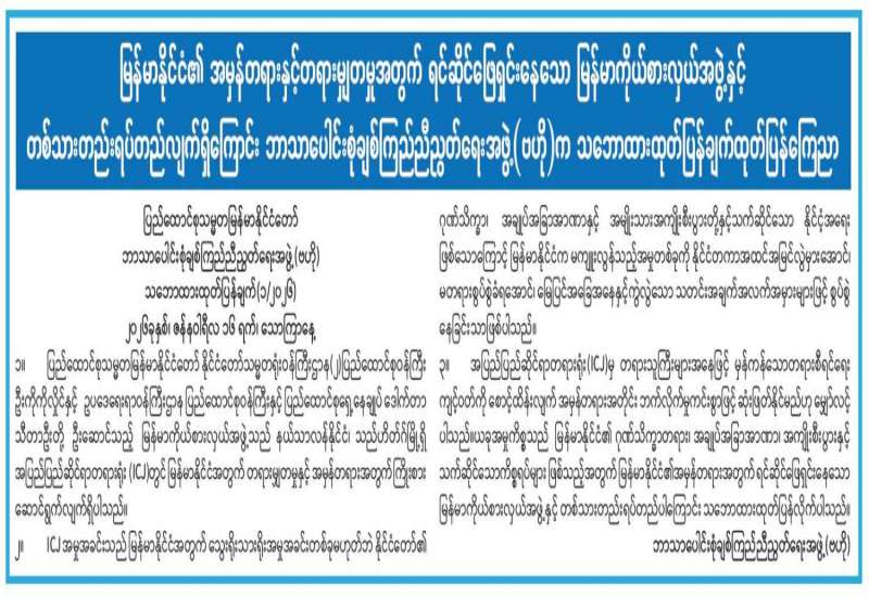 ဂမ်ဘီယာနိုင်ငံနှင့် မြန်မာနိုင်ငံတို့၏ အမှုနှင့်ပတ်သက်ပြီး ကြားနာပွဲကို ဇန်နဝါရီ ၁၂ ရက်မှ ၂၉ ရက်အထိ နယ်သာလန်နိုင်ငံ သည်ဟိတ်ဂ်မြို့ရှိ အပြည်ပြည်ဆိုင်ရာ တရားရုံးတွင် ပြုလုပ်လျက်ရှိသည်။