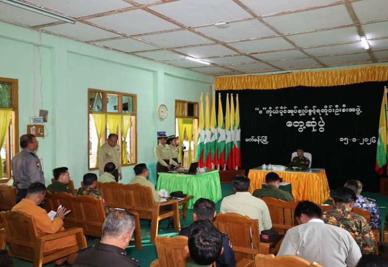ရှမ်းပြည်နယ် (အရှေ့ပိုင်း)၊ မက်မန်းမြို့နယ်အတွင်း၌ ပါတီစုံဒီမိုကရေစီ ထွေထွေရွေးကောက်ပွဲ အပိုင်း (၃)အောင်မြင်စွာကျင်းပနိုင်ရေးအတွက် ဌာနဆိုင်ရာတာဝန်ရှိသူများနှင့် တွေ့ဆုံပွဲကို ယနေ့ညနေပိုင်းတွင် မက်မန်းမြို့နယ်အထွေထွေအုပ်ချုပ်ရေးဦးစီးဌာန အစည်းအဝေးခန်းမ၌ ပြုလုပ်ရာ တြိဂံဒေသတိုင်းစစ်ဌာနချုပ် တိုင်းမှူး ဗိုလ်ချုပ် စိုးလှိုင်နှင့် အဖွဲ့ဝင်များ၊ ပြည်နယ်အစိုးရအုပ်ချုပ်ရေးအဖွဲ့ခွဲ (ရှမ်းအရှေ့) ဥက္ကဋ္ဌ၊ ခရိုင်/မြို့နယ်ရွေးကောက်ပွဲကော်မရှင်အဖွဲ့ခွဲမှ တာဝန်ရှိသူများ၊ မက်မန်းခရိုင်/မြို့နယ်ဌာနဆိုင်ရာ တာဝန်ရှိသူများ၊ ပြည်သူ့စစ်(ဌာနေ)အဖွဲ့ဝင်များ တက်ရောက်ကြသည်။